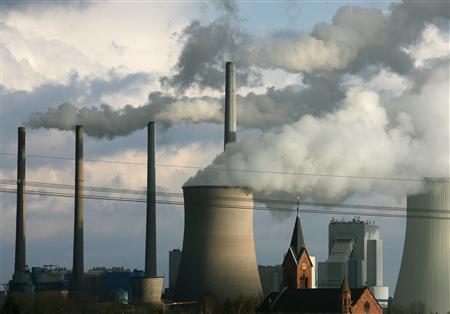 ▲德国法兰克福南部一座燃煤发电厂喷出白烟。路透社