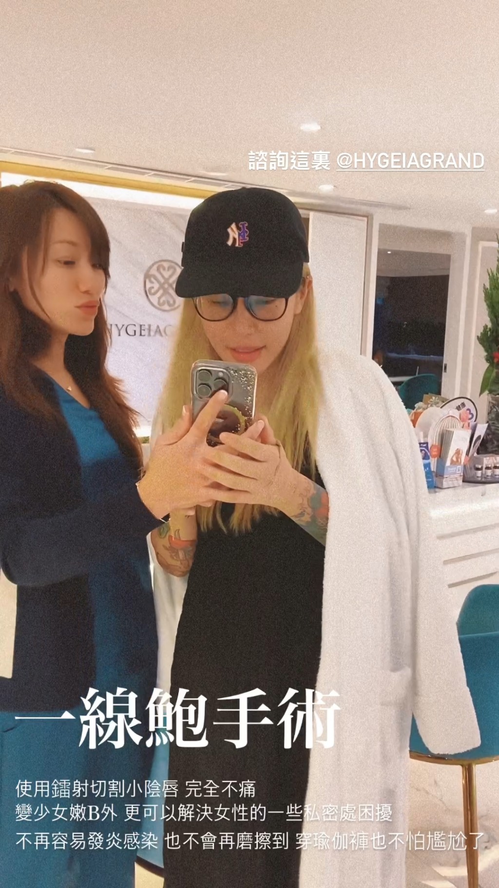 ▲梁云菲昨日在IG晒出在诊所做手术的照片,更自爆做“一线鲍手术”。