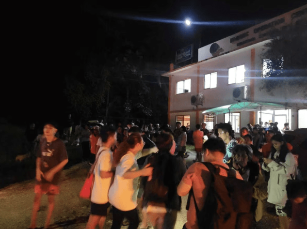 ▲菲律宾棉兰老岛(Mindanao)海域发生黎克特制7.6级强烈地震,菲律宾南苏里高市人们聚集在屋外。路透社,下同