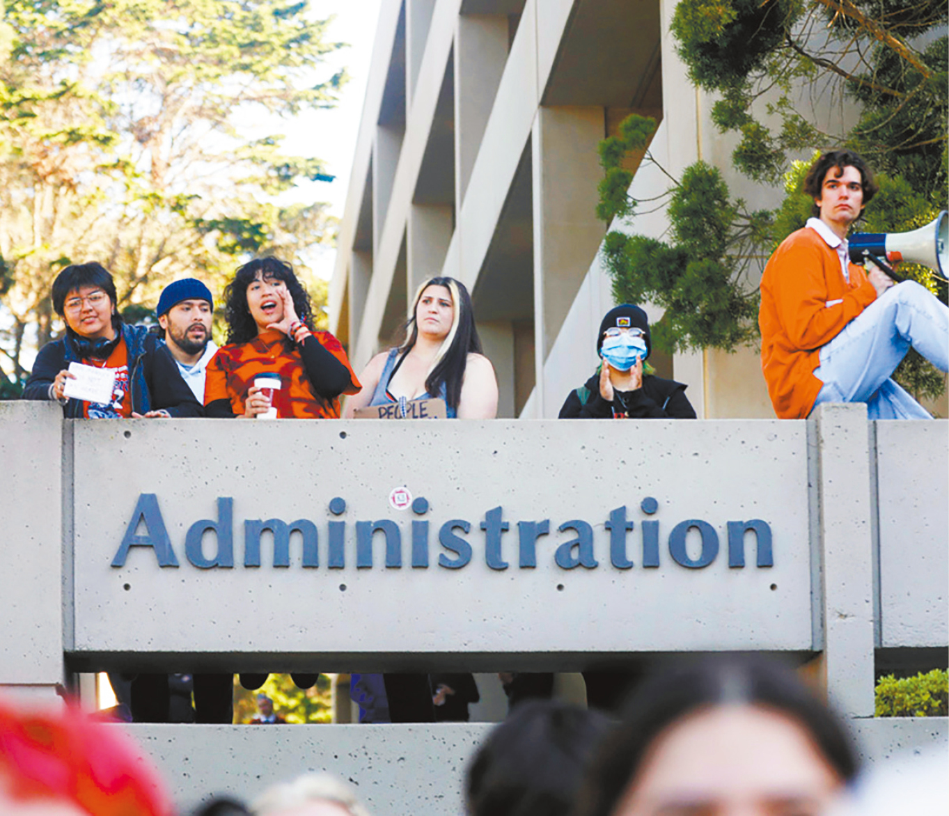 ▲旧金山州大学生上周二(28日)示威抗议校方削减课程。美联社