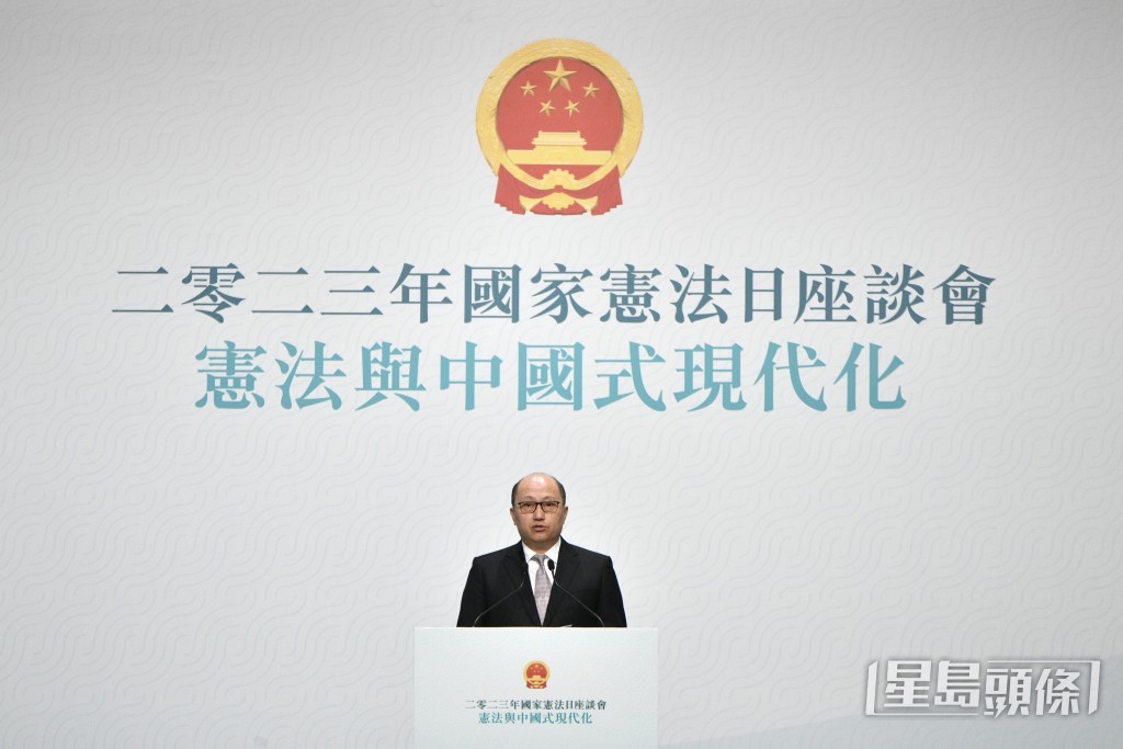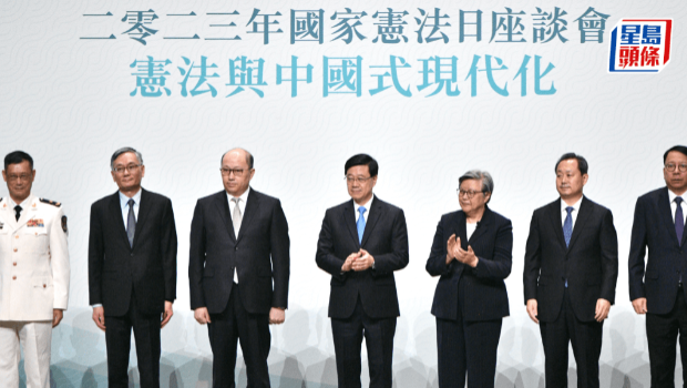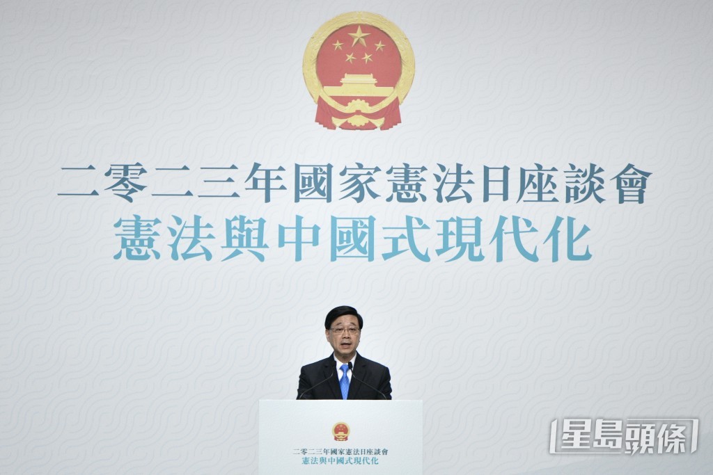港府今日(4日)联同中联办合办国家宪法日座谈会,以“宪法与中国式现代化”为主题,进行主题演讲及对谈。行政长官李家超、中联办主任郑雁雄等人致辞。