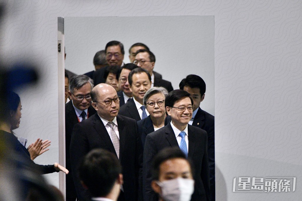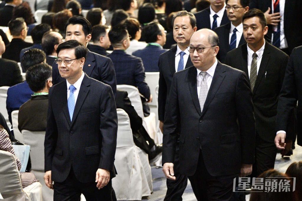 ▲李家超及郑雁雄出席特区政府同中联办合办“宪法与中国式现代化”为主题的国家宪法日座谈会。