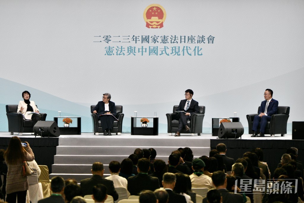 ▲范徐丽泰(左二)在宪法日座谈会的对谈环节中提到,很多人感觉香港会变成社会主义,“这个是不可能的”。