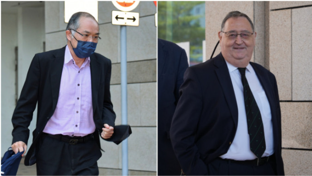 ▲两被告梁永强(左)和Leslie Harry Swann(右)。