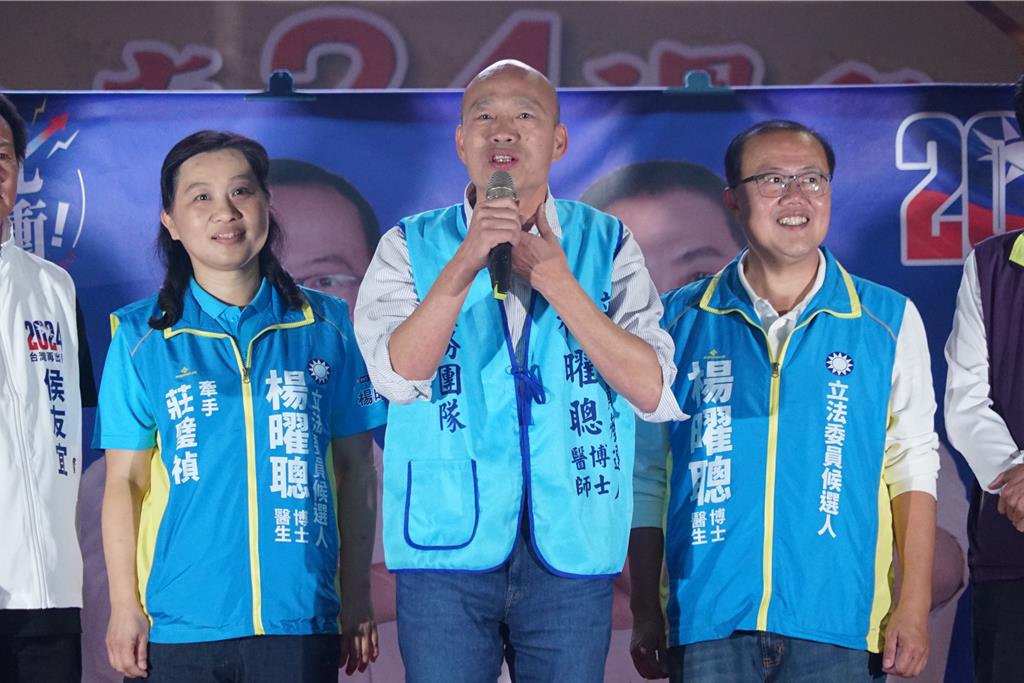 韩国瑜强调,杨曜聪做事情不是为了选举才做,他说万事不离人心,不管是事业还是选“立委”,只要人心是善的,诚恳的跟乡亲报告,乡亲就会把机会给你,希望未来杨曜聪能够进入“立法院”,跟王惠美县长一起为彰化打拚,为彰化争取更多建设,盼乡亲给予机会,一起下架民进党。