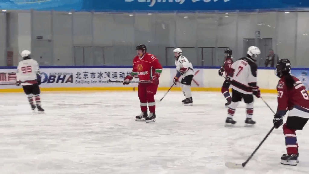 网上影片可见,卢卡申科身穿01号红色球衣进行比赛,并入球得分,与队友击掌庆祝。据报,卢卡申科与小儿子尼古拉在其就读的北京大学,热情地与北大冰球队切磋交流。