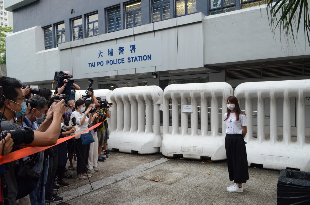 ▲2020年9月1日,周庭到大埔警署报到。资料图片