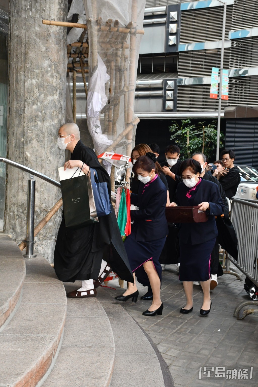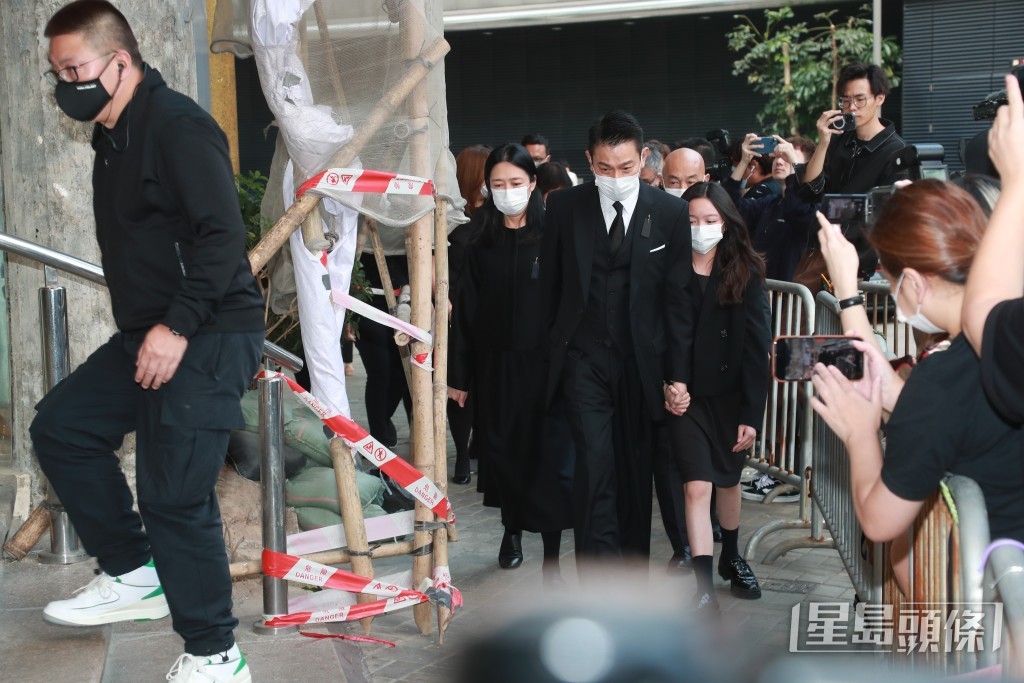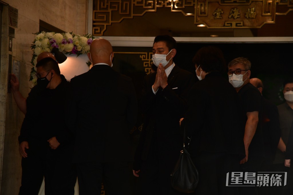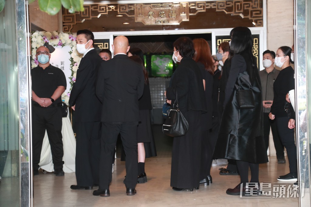穿上一身黑色西装的刘德华下午专程从灵堂落楼迎接太太朱丽倩和女儿刘向蕙(Hanna),刘德华到保姆车旁右手拖着太太左手拖着女儿步入殡仪馆,在大堂等候电梯时,刘德华背着殡仪馆内的传媒,似刻意用人墙包围着女儿及太太尽量避开传媒镜头,在入电梯前,刘德华面向传媒双手合十,向传媒致谢。