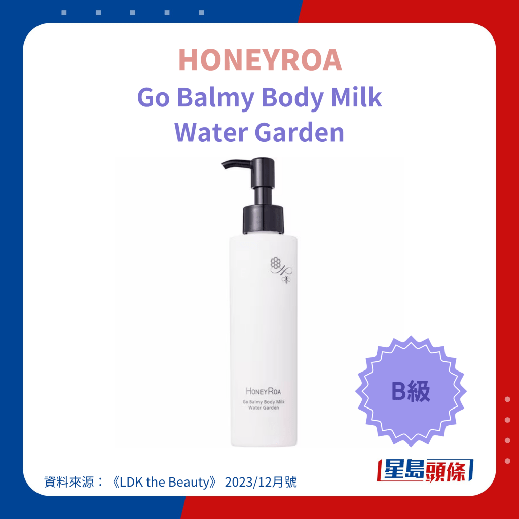 日本美妆杂志《LDK the Beauty》就保湿力、成分及使用感3大评分准则测试了23款人气身体润肤露。 测试邀请多名20至40岁女士实际使用产品,并由专家检测产品成分标签及使用专业仪器测量肌肤含水量。 结果显示,雪肌精、Neutrogena等6个品牌获得A级的高评分,达高效保湿力,迅速滋润干燥肌肤。