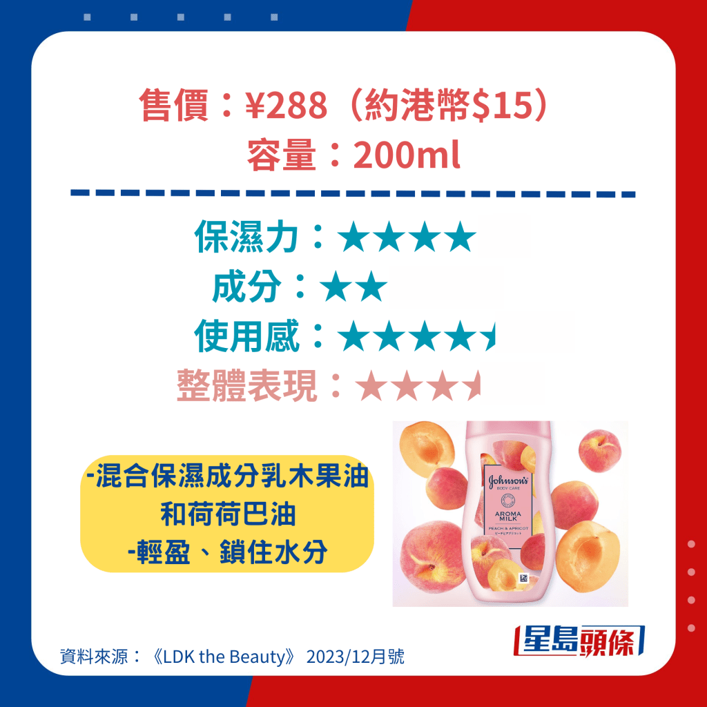 ▲Johnson’s Body Care Aroma Milk Peach & Apricot