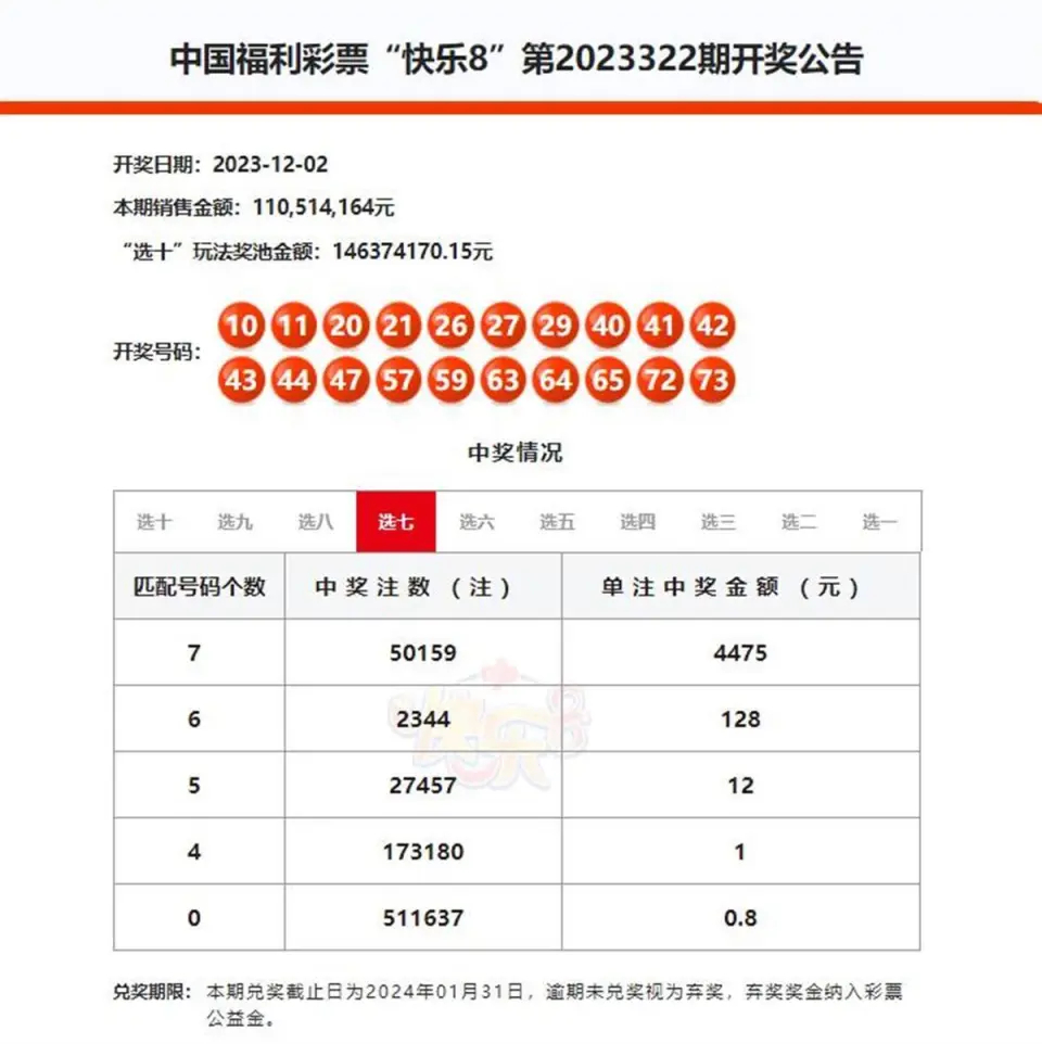 据了解,2日当日,该名幸运儿在南昌市福彩站点共购买5万注号码相同的“快乐8”游戏中“选七”的彩票。当晚,他所购彩票均中得“快乐8”的“选七中七”奖项,单注奖金4475元,总奖金达2亿多元。