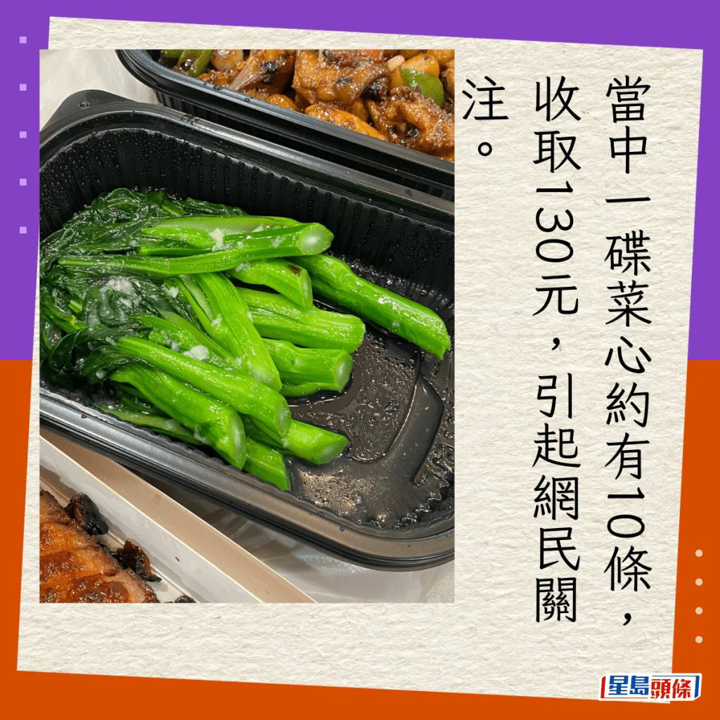 ▲当中一碟菜心约有10条,收取130元,引起网民关注。