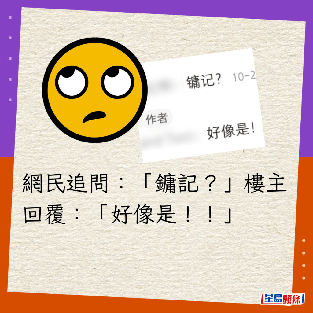 ▲网民追问:“镛记?” 楼主回覆:“好像是!!”