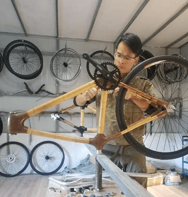 红星新闻报道,这位以竹制作单车的男子名叫谭江永,在上海读大学,专业是服装设计,大学毕业后,在上海一直从事竹艺设计的工作,偶然机会下接触到了竹单车的概念,回到家乡后想到这裡有成片的竹林,就决定将竹子与单车相联系,在自家楼顶上搭了一个简易棚子开始了以竹造车创业之路。