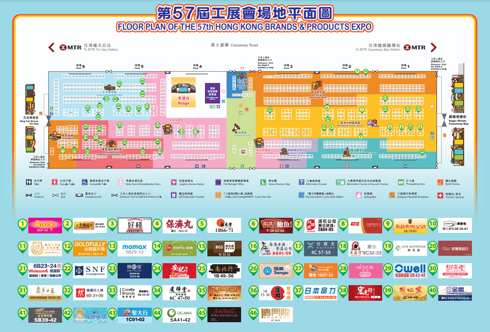 是次工展会分为10个主要展区,可以一次过满足多方面的购物需求,包括食品饮料区、蔘茸海味汤料区、美容保健区、生活家居区等基本展区,以及本年度新设的“潮饮‧潮食”美食区。潮饮‧潮食区内集齐多款本地及世界各地美食,亦首度加入售卖酒精饮品的摊位。