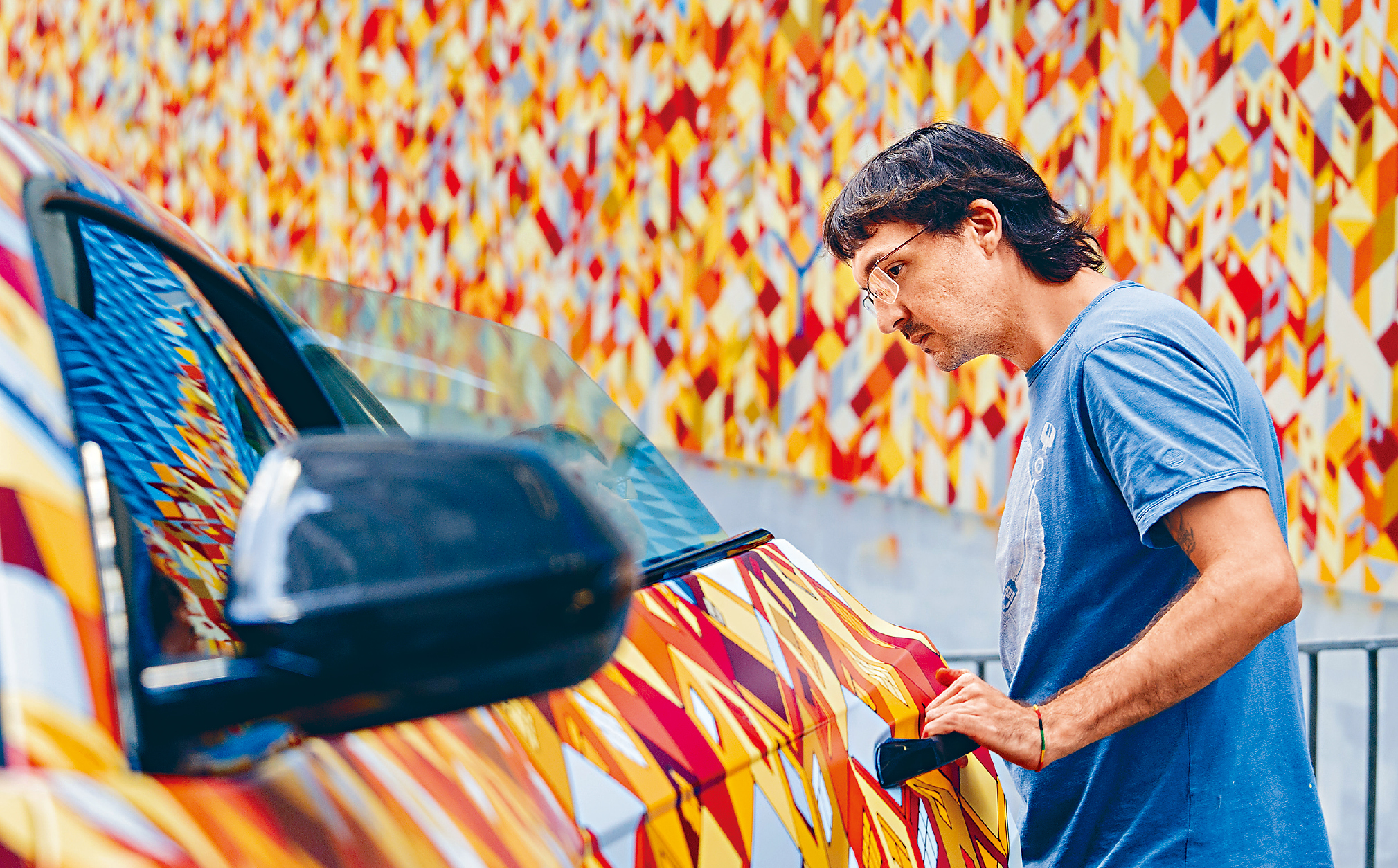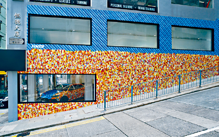 Alex Croft参考了香港建筑常见的瓷砖图案,以重复的几何元素创造独特的立体视效,又运用兰博基尼跑车常用的色彩创建深度,描绘蓝天下的城市活力,“兰博基尼常用六角形或Y形,如六角形风口、Y形车头灯,大家观赏壁画及艺术车时不妨留意,从中摸索Alex Croft对品牌的艺术解读。” Albert称。