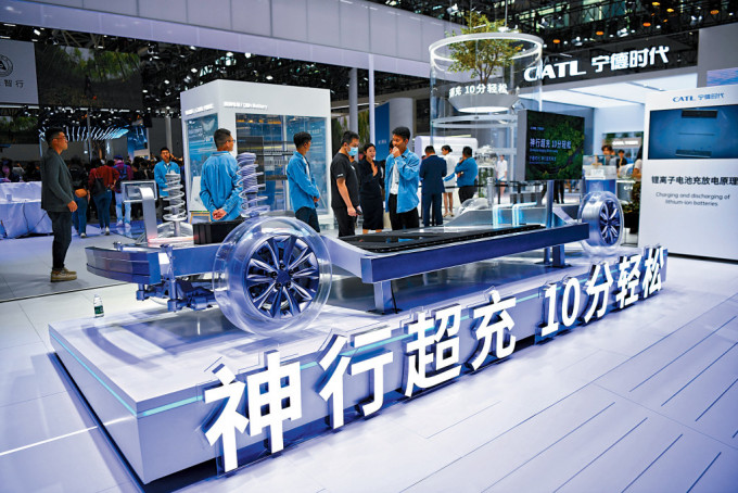 ▲广州车展上月揭幕,宁德时代展示汽车电池模型。