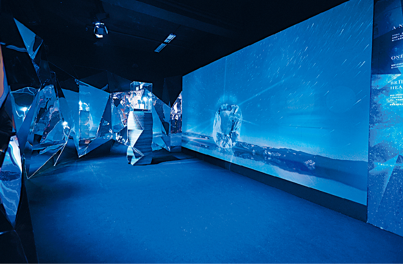 ▲设于三楼的空间带来沉浸式的艺术体验,以粤语及普通话声音导航,娓娓道出天然钻石的动人故事。