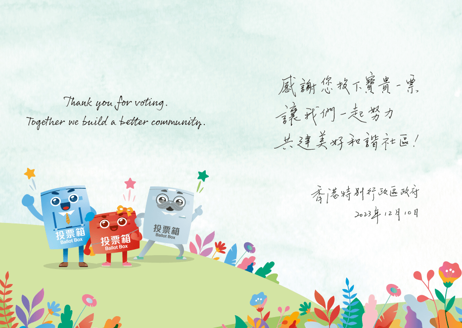 当局向投票的市民派发心意卡,曾国卫强调心意卡是表达政府谢意,希望外界不要过份解读,例如一些阴谋论指政府用以识别公务员有否投票,他指没心意卡没有任何识别或编号,出示作投票凭据是“谂都冇谂过嘅的谂法”。