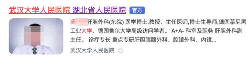 ▲武汉大学人民医院胰腺外科主任医生、武汉大学教授汤某某。