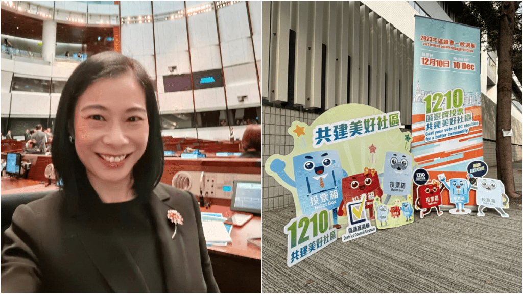 ▲选委界立法会议员陈曼琪支持政府向投票选民赠送心意谢卡、并在投票站旁设“打卡位”的做法。