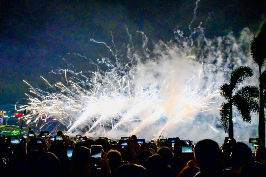 ▲“冬日维港水上烟火”在西九上演,照亮维港上空。