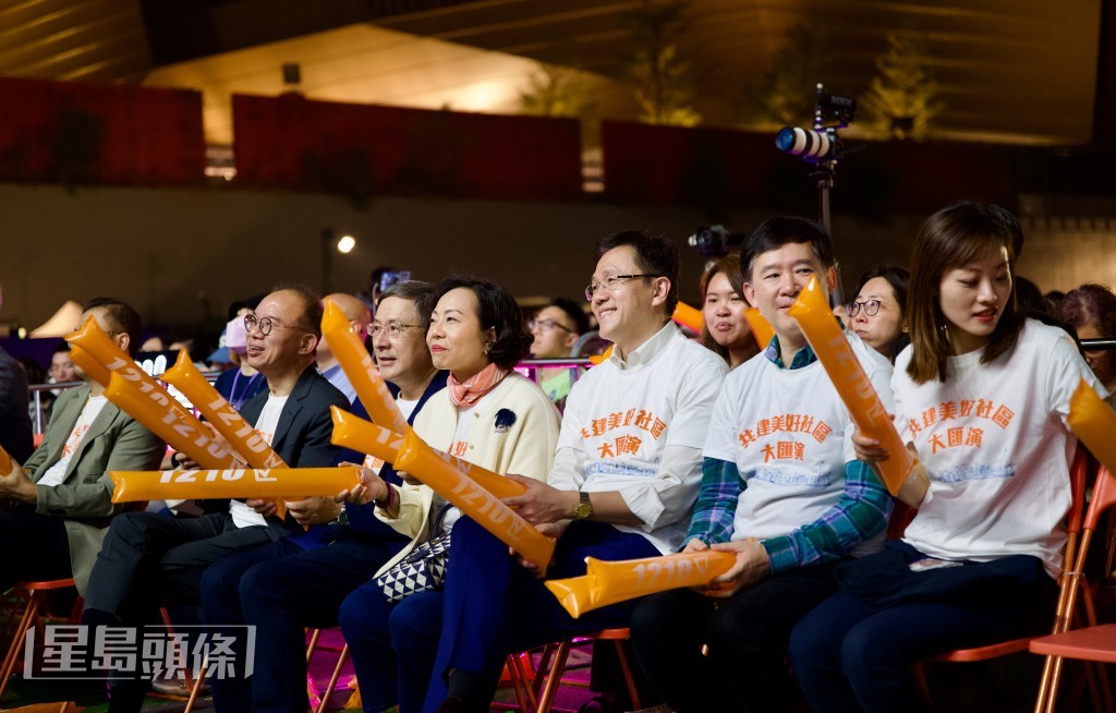 ▲政务司司长陈国基、财政司司长陈茂波、律政司司长林定国等特区官员都在台下撑场。