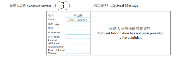 ▲湾仔区地方选区候选人3号李文伟。
