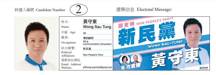 ▲湾仔区地方选区候选人2号黄守东。