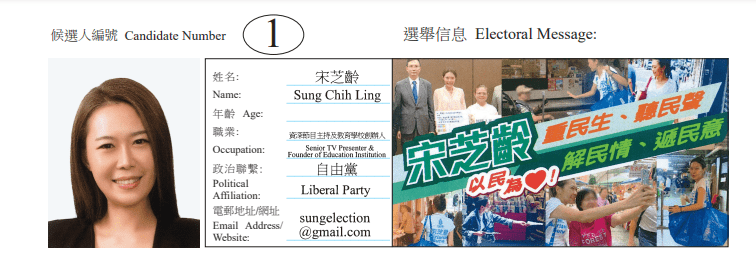 ▲湾仔区地方选区候选人1号宋芝龄。