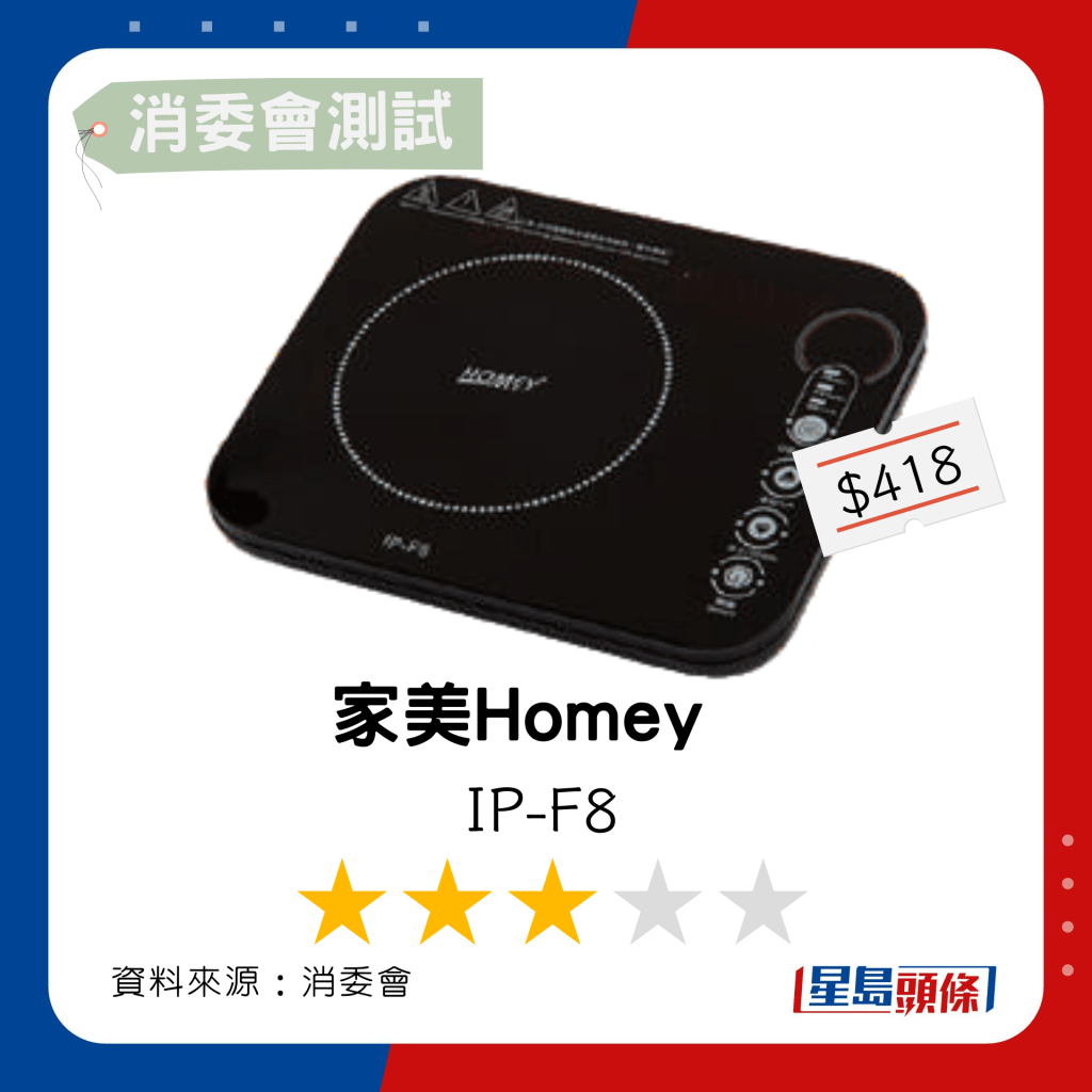 至于余下7款电磁炉表现又如何? 在消委会测试中,其总评分为3至4星,整体分数稍低: