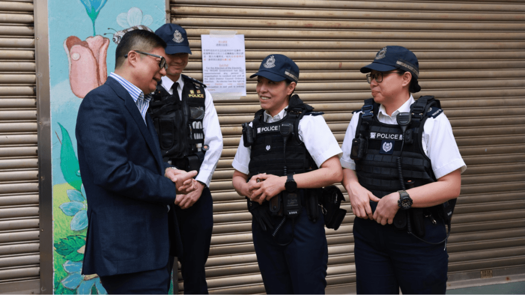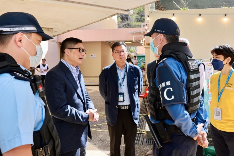香港每逢有重要日子,纪律部队都从不缺席。今日(10日)是区议会选举投票日,各纪律部队动员不少人力在多个票站当值,保安局局长邓炳强马不停蹄前往多个票站,采访值勤同事,包括警队、特务警察、辅警、民安队,以及医疗辅助队,感谢他们谨守岗位,确保投票日运作顺利。