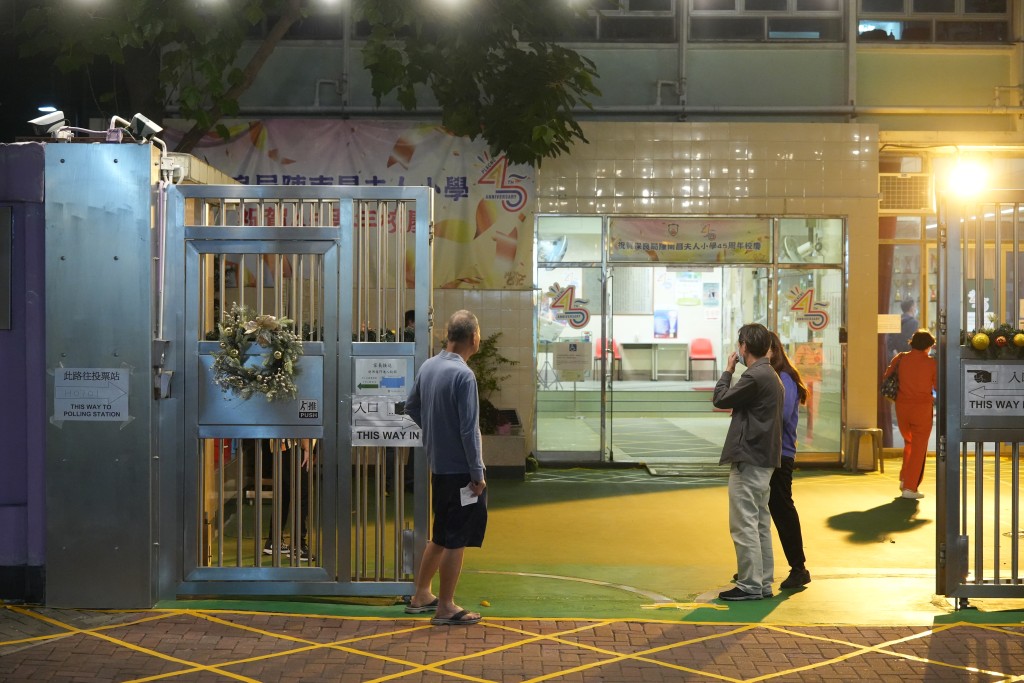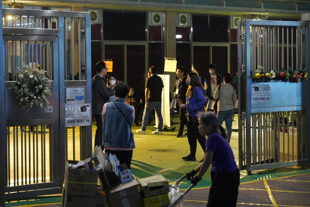 ▲《星岛网》晚上在新蒲岗陈南昌中学票站所见,职员要求票站内的选民到室外等待。