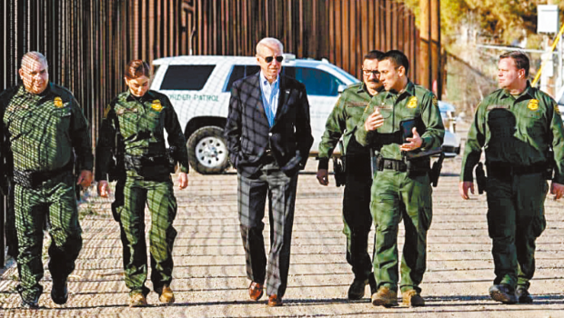 ▲图为总统拜登在1月8日访问德州埃尔帕索的美墨边境时,与海关和边境保护局官员交谈。 资料图片