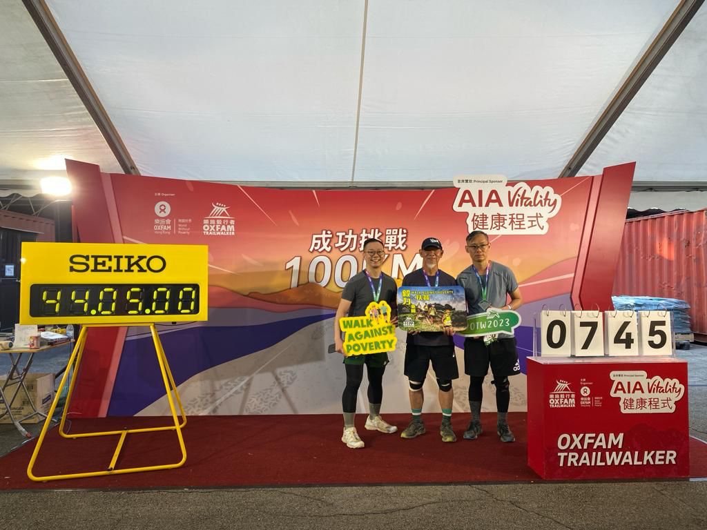 我觉得如果你对一样事情还有热诚的话,就应该趁年轻时,在能力范围内尽早完成它。而今次我们到达终点嘅时候为44小时零5分钟。多得我两队嘅队友沿途的照顾,除嘘寒问暖外,还不时提醒要多喝水呀,及补充能量食品及饮品。
