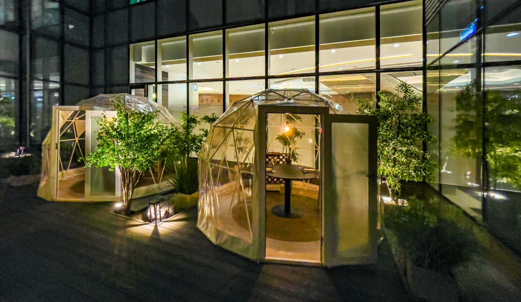 美食当前,有靓景当然会加分啦!全新意大利餐厅Stella Kappo在露天平台自设Glamping透明帐幕,将户外的天然光引入餐厅,予人开扬观感同时可欣赏到外面的花园景观,入夜后更可观赏星空景色,大家可以在透明帐幕内叹意日美食,相当写意!