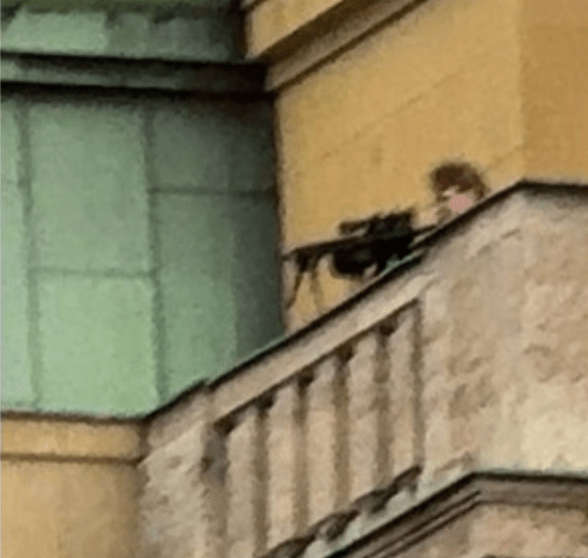 从新闻图片所见,枪手在学校一建筑物的屋顶,向大学内人群开枪。枪手是该校学生,已身亡,有传他吞枪自杀,并从屋坠落,但警方未证实。