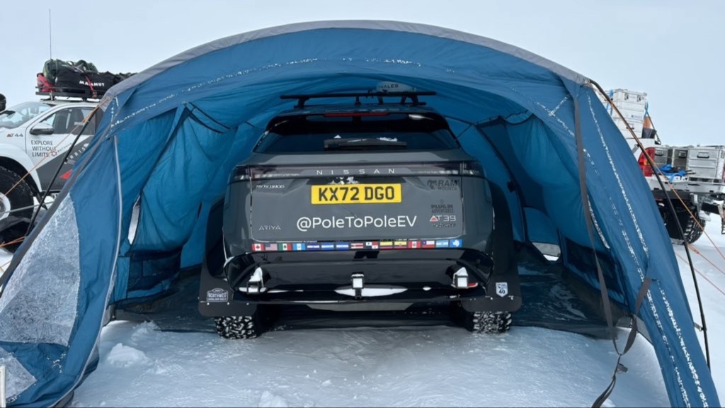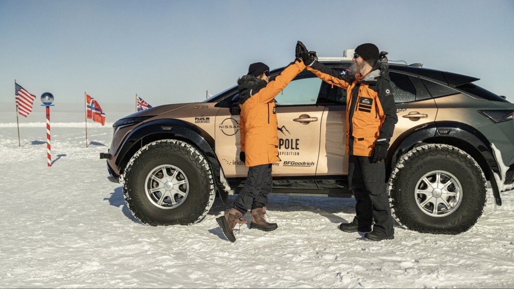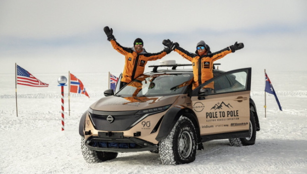 这项壮举利用日产电动车Ariya e-4ORCE实现。他们今年3月从加拿大地磁北极出发,经过9个月时间、行驶共3万公里,12月15日终于抵达南极,成为全球首例。由于卫生通讯问题,这项好消息等到12月18日才能发布。