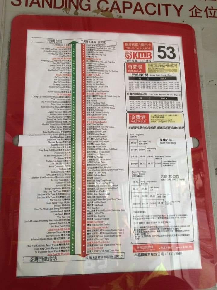 九巴53号线共有74个车站,往来元朗形点和荃湾如心广场,全长逾30公里,车程约2小时,来回一转便是约4小时。不少网民看中其车程长而成为游巴士河“热线”,甚至制作facebook专页,相当受欢迎。