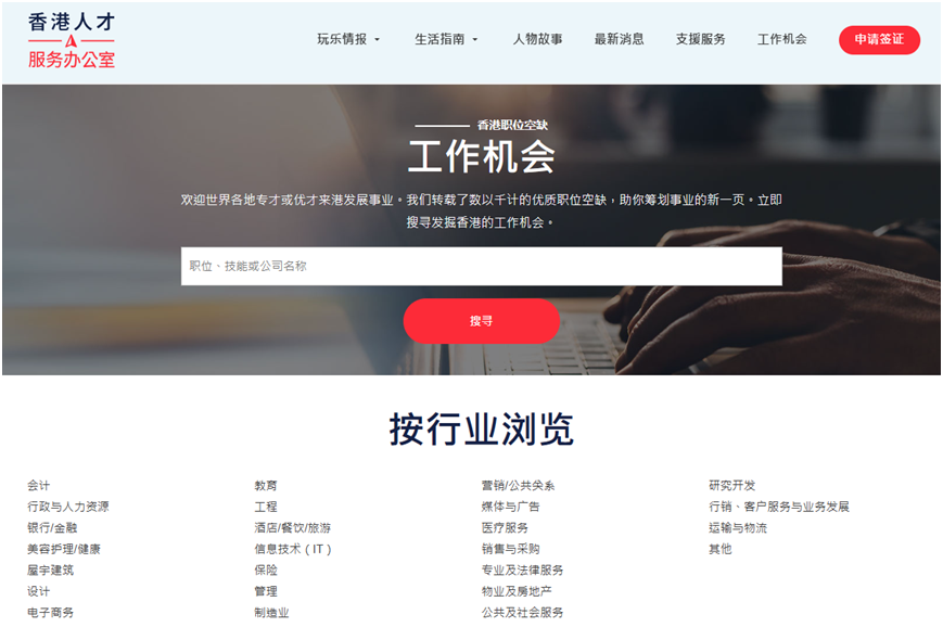 受移民潮的影响,香港各行各业急需人手。“人才服务窗口”汇集了香港各大空缺职位,包括银行及金融、创新科技、人力资源、管理、 市场推广及广告、酒店等。如有心仪岗位,可直接在平台申请。