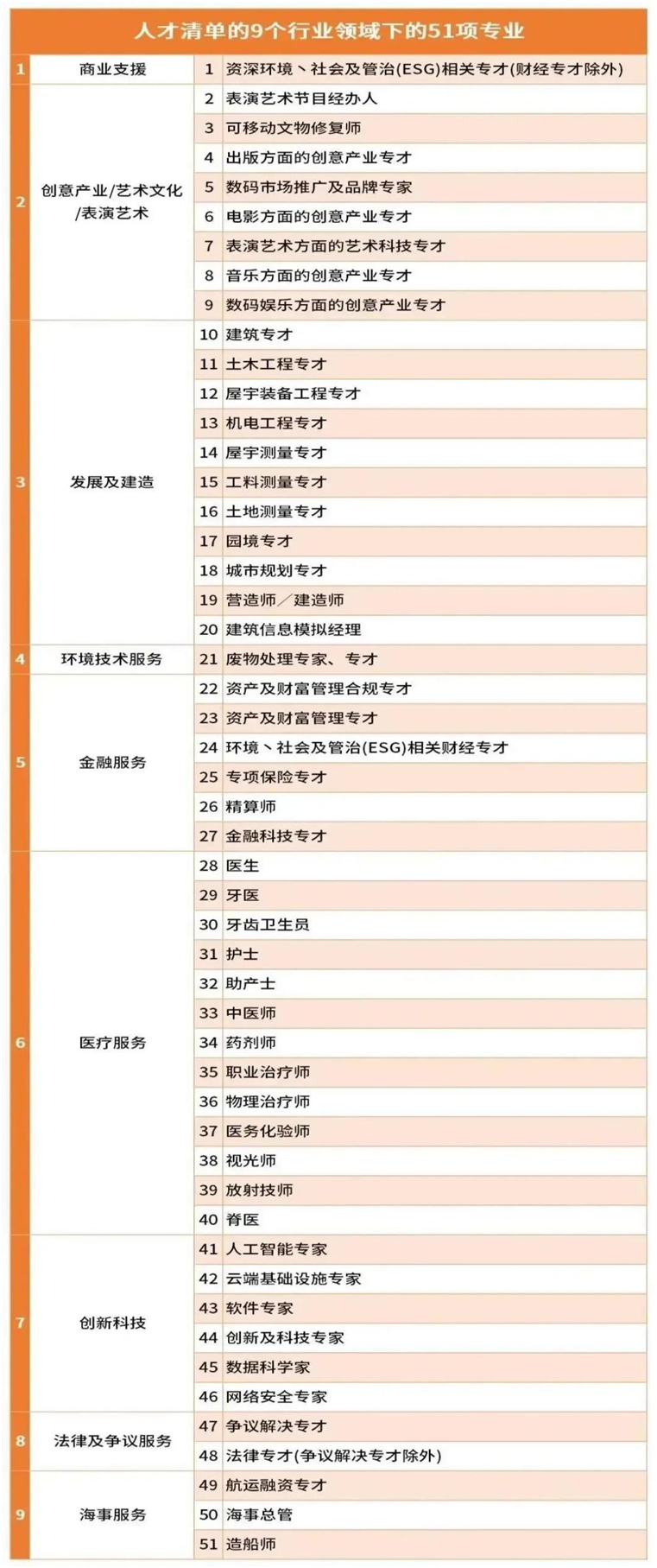 香港特区政府5月份还扩大了“人才清单”,把涵盖专业由原有13项增加至51项,换句话说,这些岗位都是人手比较紧缺,是较容易审批成功的岗位类型。