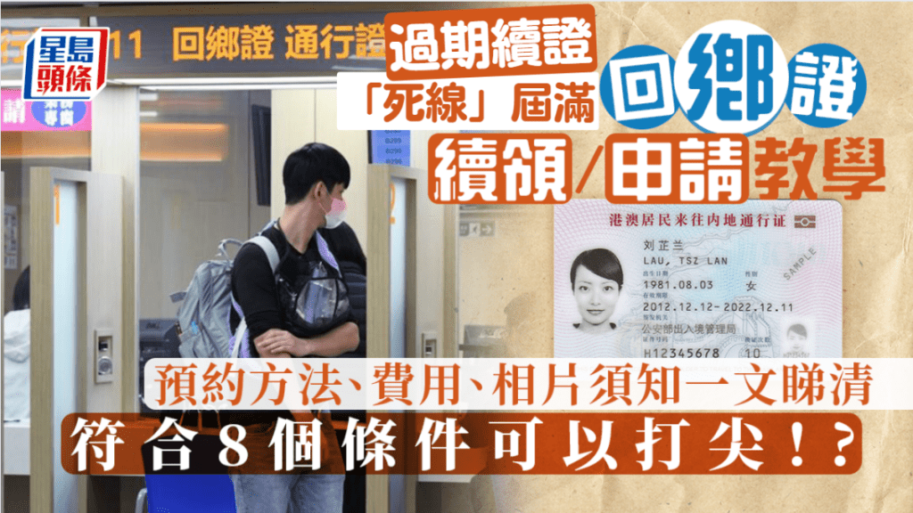 回乡证预约/回乡证过期|自中港两地全面通关以来,港人都会趁着周末假期北上深圳吃喝玩乐。 随着延长回乡证(《港澳居民来往内地通行证》)有效期措施于12月31日届满,相信不少港人都需赶在限期前预约或续领回乡证。 而现时到中旅社办领回乡证必须事前网上预约,不设即日筹号。 本篇回乡证申请续领教学文将为各位整理以下资料:回乡证预约、过期续领、网上预约手续、证件相片要求、费用、办理快证等重要资料。