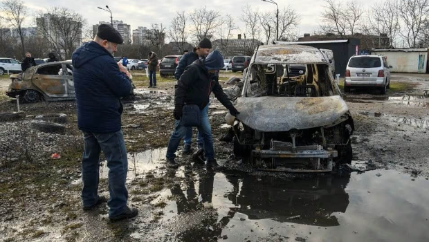 ▲俄罗斯29日对乌克兰发动大规模导弹攻击,基辅许多车辆遭摧毁。(路透社)