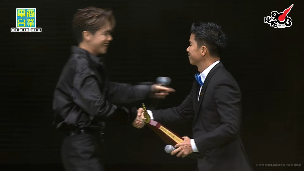林海峰颁发“叱吒乐坛我最喜爱的男歌手”予得奖者张敬轩。