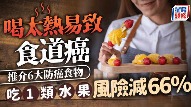食道癌为香港第10位致命癌症,每年平均新增约400宗确诊个案,喝太热的饮品为致癌因素之一。 有医生引述研究指,有5类食物有效预防食道癌,其中1类水果更有助减低66%风险。