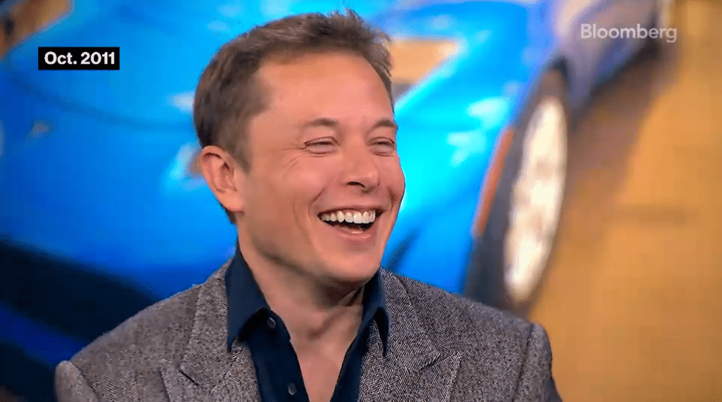 ▲马斯克一度笑得无法回答,最后勉强反问主持“你有看过比亚迪的车吗?”彭博截图