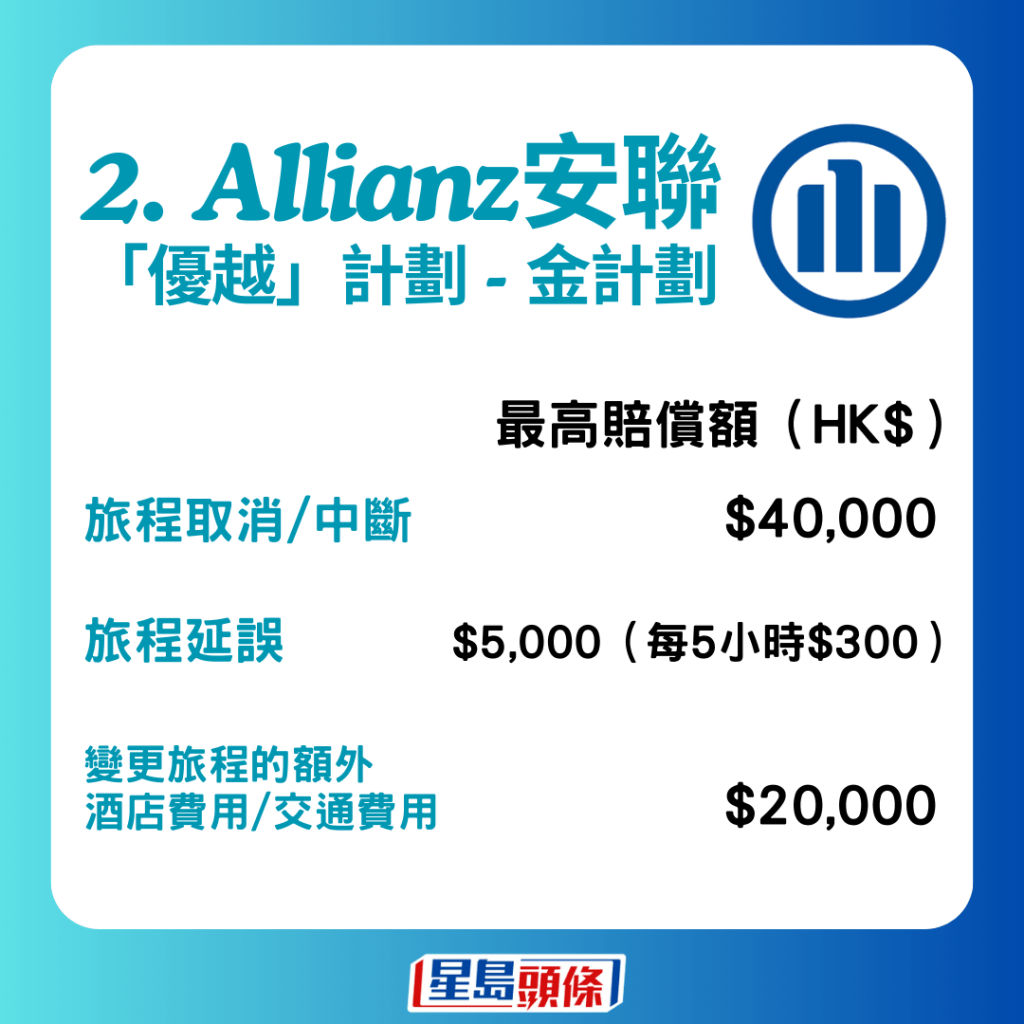 而部分旅游保险产品,如Allianz安联优越计划会延伸至受保人以飞行里数、航空积分或会员卡积分预先兑换的旅游开支,例如行程的总时数超过6小时,就会赔偿1,000元。然而,积分或里数是不能弥补,因此在选择旅游保险时应细阅保障条款。