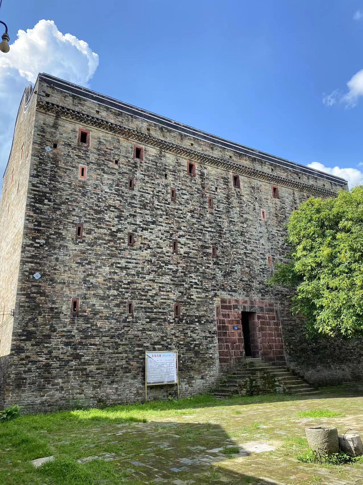 五宅古堡更是龙门境内最雄伟的碉楼。站在古堡前,映入眼帘的是有近400年历史的城墙。古堡高约20米,独特的造型与建筑艺术令人叹为观止。大门是用约两层楼高的红砂岩条石筑成,外观方方正正,每层每室只开极小的洞口作为窗户;从外面看,石砌的古堡被封得严严实实。据专家考证,五宅古堡是广东省罕有的、历史最悠久的、规模最大的碉楼式古堡之一,具有较高的科研价值和旅游价值。