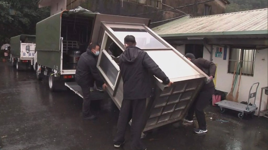 ▲台湾的“国安局”驻守万里人员将门口岗哨拆除并搬上卡车离开。中天新闻台