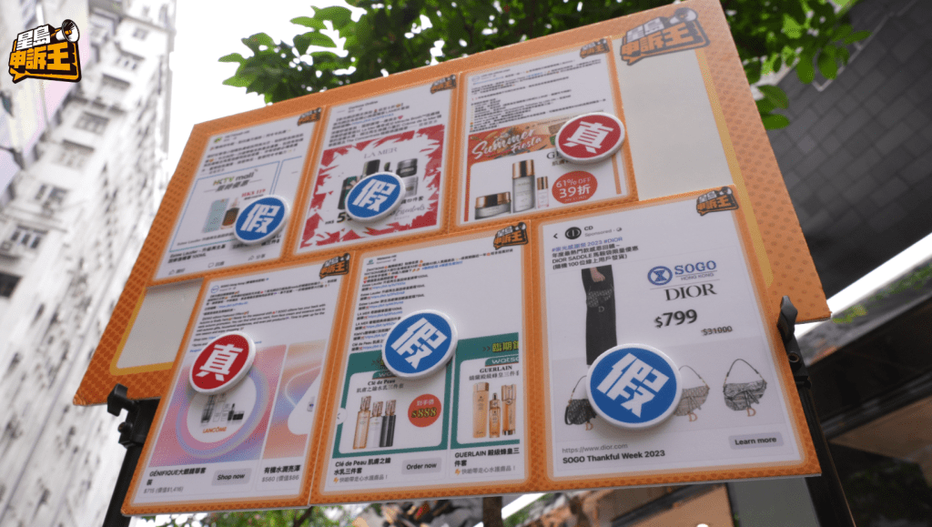 ▲《星岛申诉王》准备了六个真假专页截图,在街头实测,让市民挑战一下分真假。